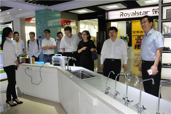 在榮事達智能家電研發(fā)中心產(chǎn)品展示廳,領(lǐng)導(dǎo)們饒有興趣地參觀了榮事達凈水機展區(qū),總經(jīng)理支新郁講解了凈水機產(chǎn)品類型及所運用的反滲透過濾技術(shù),并介紹了公司為唐山世界園藝博覽會、三亞鳳凰國際機場等場所安裝的商用凈水設(shè)備。當?shù)弥獦s事達與印度德里公共事務(wù)委員會組織就新德里城區(qū)安裝自動售水設(shè)備項目達成合作意向,張博士一行人員對公司在凈水工程領(lǐng)域取得的突破表示了衷心的祝賀。