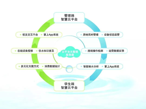 在注重產(chǎn)品品質(zhì)和工程設(shè)計的同時,榮事達著眼校園直飲水的互聯(lián)網(wǎng)化建設(shè),依托先進的云端大數(shù)據(jù)平臺、無線網(wǎng)絡體系和智能一卡通技術(shù)等,創(chuàng)新打造校園直飲水智慧管理系統(tǒng)。系統(tǒng)直連凈水主機、開水器、飲水機等終端定制設(shè)備,實現(xiàn)精細化管理。學生在使用中不僅能查詢飲水消費記錄、在線報修設(shè)備等,還能擁有微信、支付寶等多元化充值方式選擇,充分享受快捷的智能化飲水體驗。同時設(shè)備運營商也可通過電腦或手機APP端口接入云數(shù)據(jù)平臺,異地監(jiān)測工程運行狀況,實時掌握水電成本、消費收益、設(shè)備狀態(tài)等數(shù)據(jù)信息,日常管理更簡單。