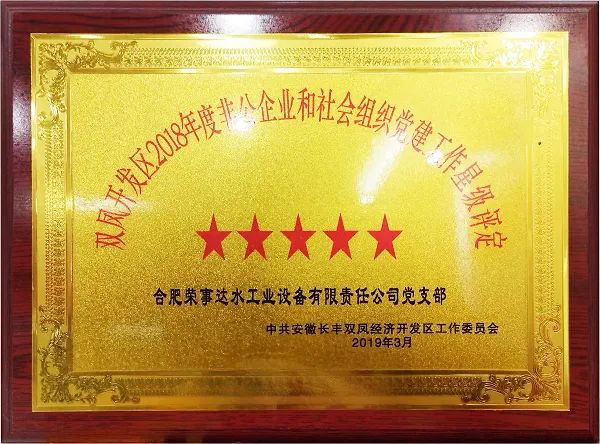榮事達水工業黨支部自成立以來,積極促進黨建成果引領和推動公司的全面建設和發展,先后組織了黨史學習教育、扶貧捐贈、疫情捐贈等多項黨建工作和公益行動, 連續多年榮獲五星級黨組織、先進基層黨組織等多項榮譽。