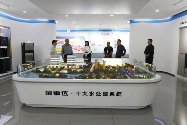 沉浸式參觀,智能凈水工廠實力盡顯 領導一行參觀了榮事達智慧水世界展廳,聽取了集團的發展歷程以及令人矚目的成就,全面了解了社區智慧飲水系統、校園直飲水系統、全屋智慧凈水系統等榮事達十大水處理系統,領導們對公司的綜合實力給予了高度評價與認可。