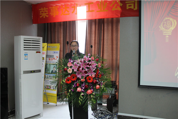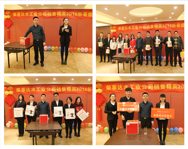 晚上六時,全體銷售精英參加了晚宴,王總在晚宴上作重要發言,他指出,2015年,在各部門的共同協作之下,榮事達凈水機網點覆蓋率穩步提升,3T模式在終端引發銷售狂潮,事業部銷售業績再創新高。他希望在2016年,廣大銷售精英將榮事達優質的產品、服務與終端營銷有機結合,奮勇爭先、昂首闊步刷新銷售戰績。
