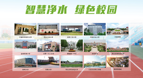 榮事達水工業(yè)先后承建了中國科學(xué)技術(shù)大學(xué)、河南大學(xué)、西北農(nóng)林科技大學(xué)、江蘇省丹陽市第五中學(xué)等三千五百余所學(xué)校的直飲水工程,‘喝’護千萬師生飲水健康。