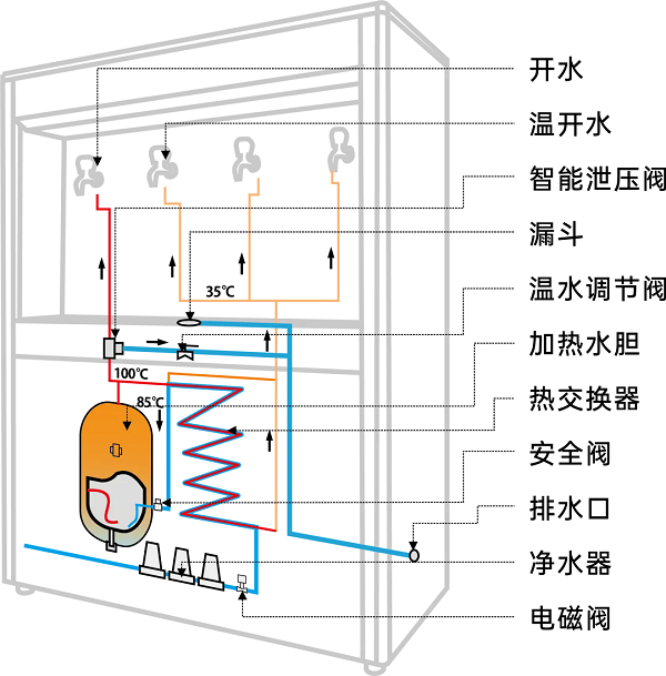 榮事達(dá)RSD-RO4E節(jié)能直飲機(jī)是中國節(jié)能認(rèn)證產(chǎn)品,產(chǎn)品采用節(jié)能熱交換技術(shù),在管式交換器內(nèi),過濾后的自來水吸收開水釋放的熱能升溫85℃左右,從而充分節(jié)省了降水燒開所需的電能和時(shí)間,有效改善了傳統(tǒng)飲水機(jī)的費(fèi)時(shí)、費(fèi)電的弱點(diǎn)。設(shè)備采用二開水二溫水設(shè)計(jì),既滿足了員工泡茶的需求,也提供了即飲的溫水選項(xiàng),極大地方便了員工的日常飲水。此外,設(shè)備采用先進(jìn)的RO反滲透技術(shù),有效濾除水中的泥沙、鐵銹、重金屬等雜質(zhì),出水可達(dá)直飲標(biāo)準(zhǔn)。